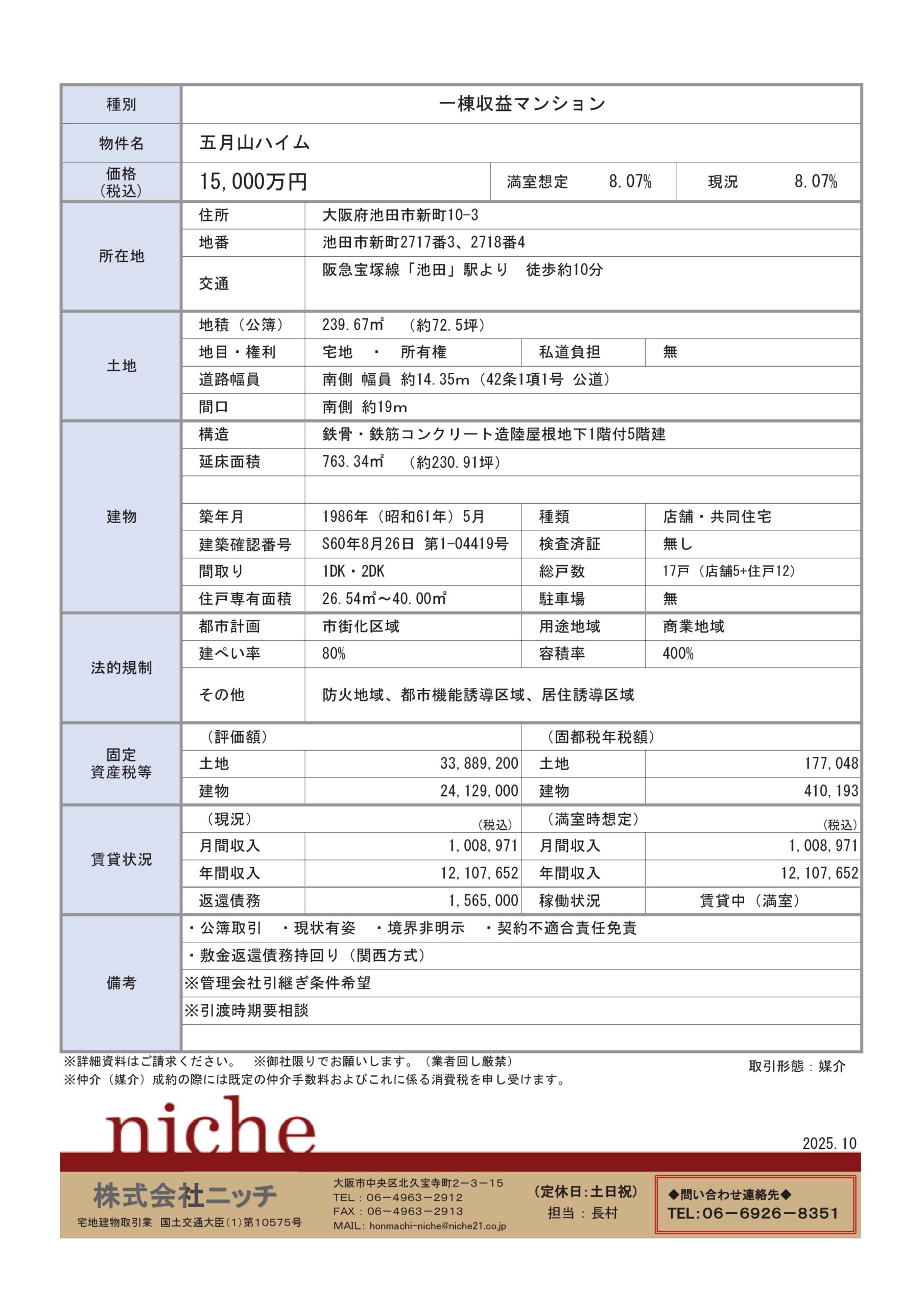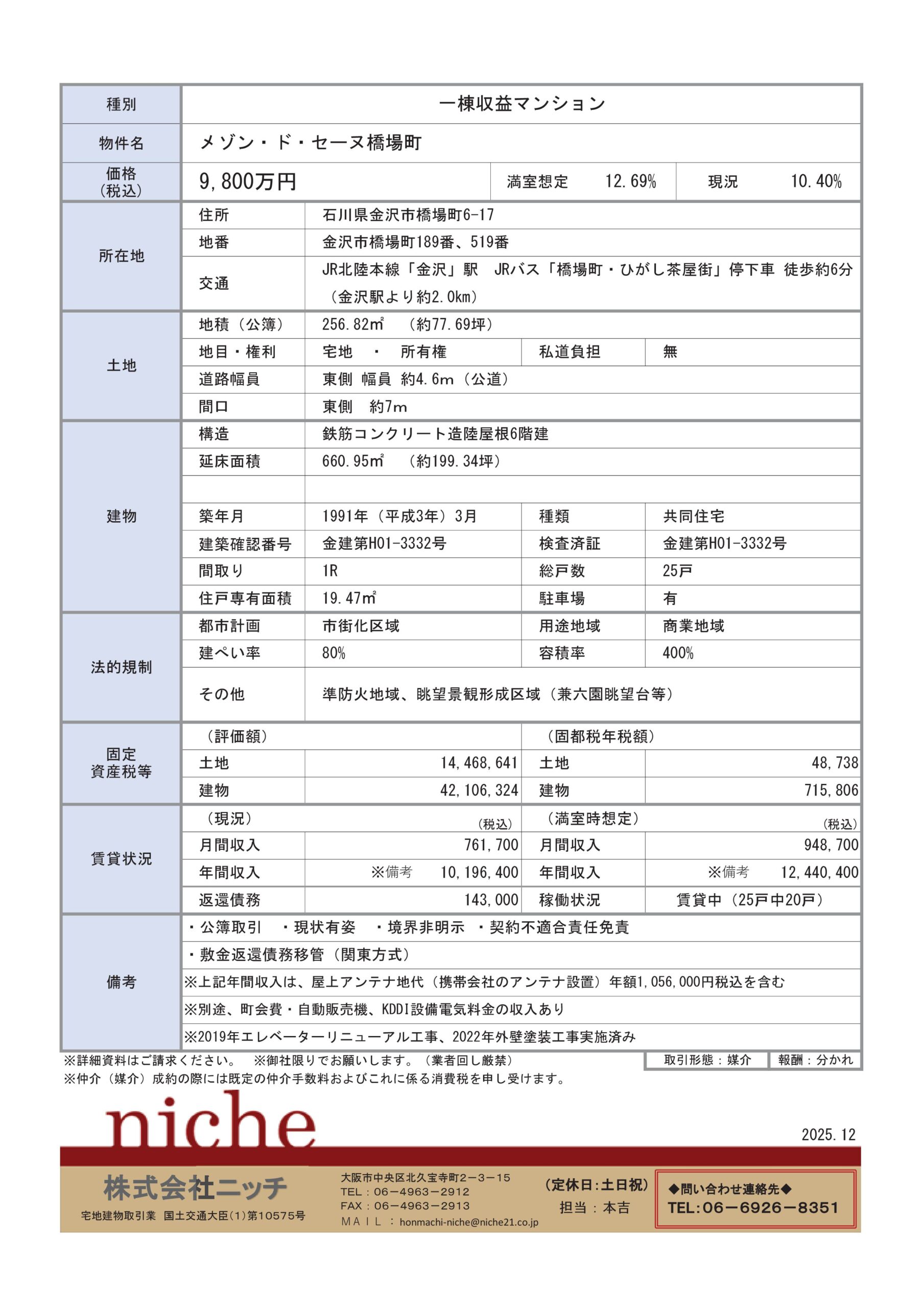 | その他 | ・公薄取引 ・現状有姿 ・ガス貸与契約承継 ・契約不適合免責 ・ロードヒーティング 令和7年12月9日現在 (広告有効期限 令和8年1月31日) |