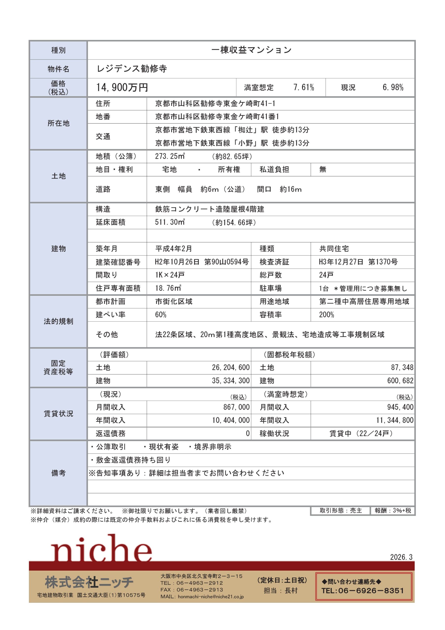 | その他 | ・公簿取引 ・現状有姿 ・境界非明示 ・契約不適合責任免責 ・敷金返還債務移管(関東方式) 令和8年3月13日現在 (広告有効期限 令和8年4月30日) |
