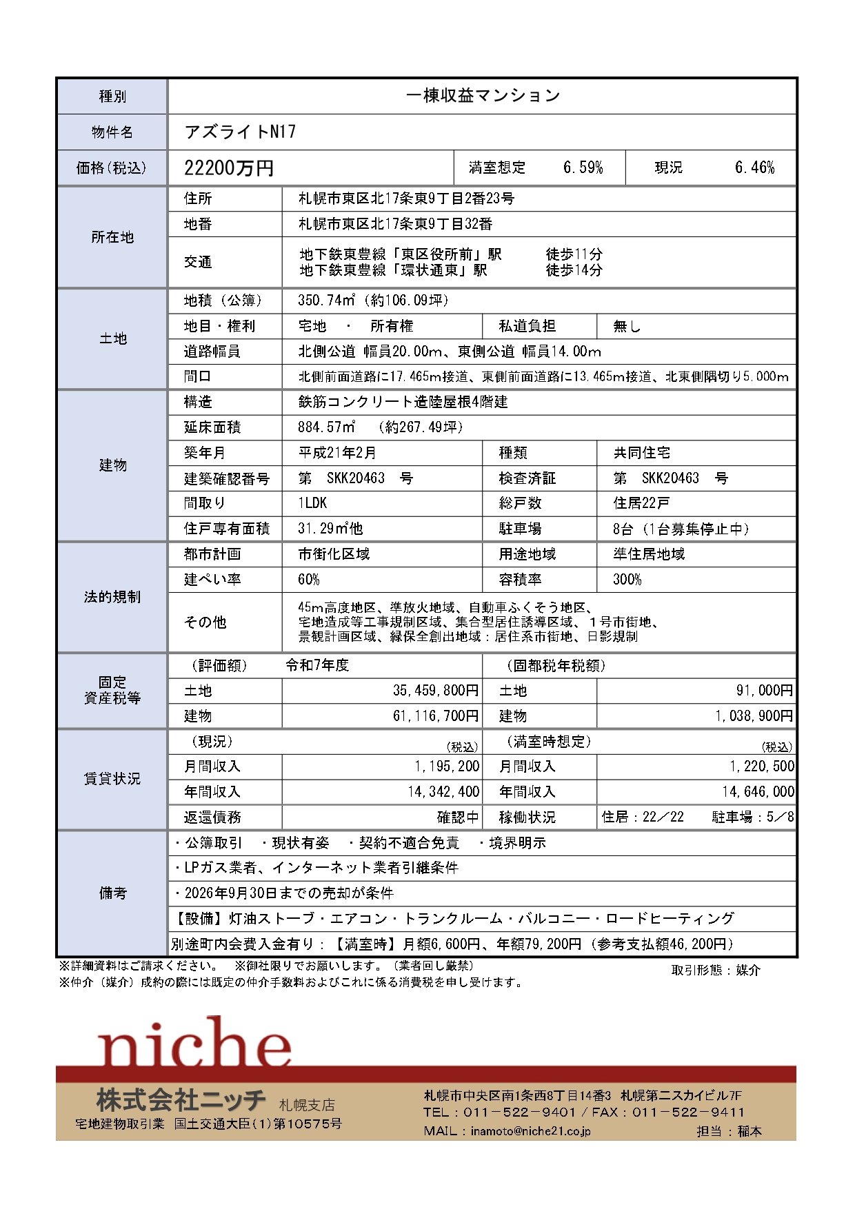 | その他 | ・公簿取引 ・現状有姿 ・境界非明示 ・契約不適合責任免責 ・敷金返還債務持回り(関西方式) 令和8年4月21日現在 (広告有効期限 令和8年6月31日) |