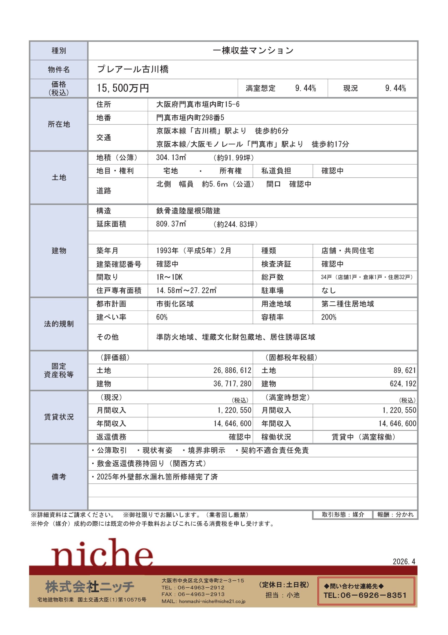 平成5年築S造 京阪本線「古川橋」駅より徒歩約6分