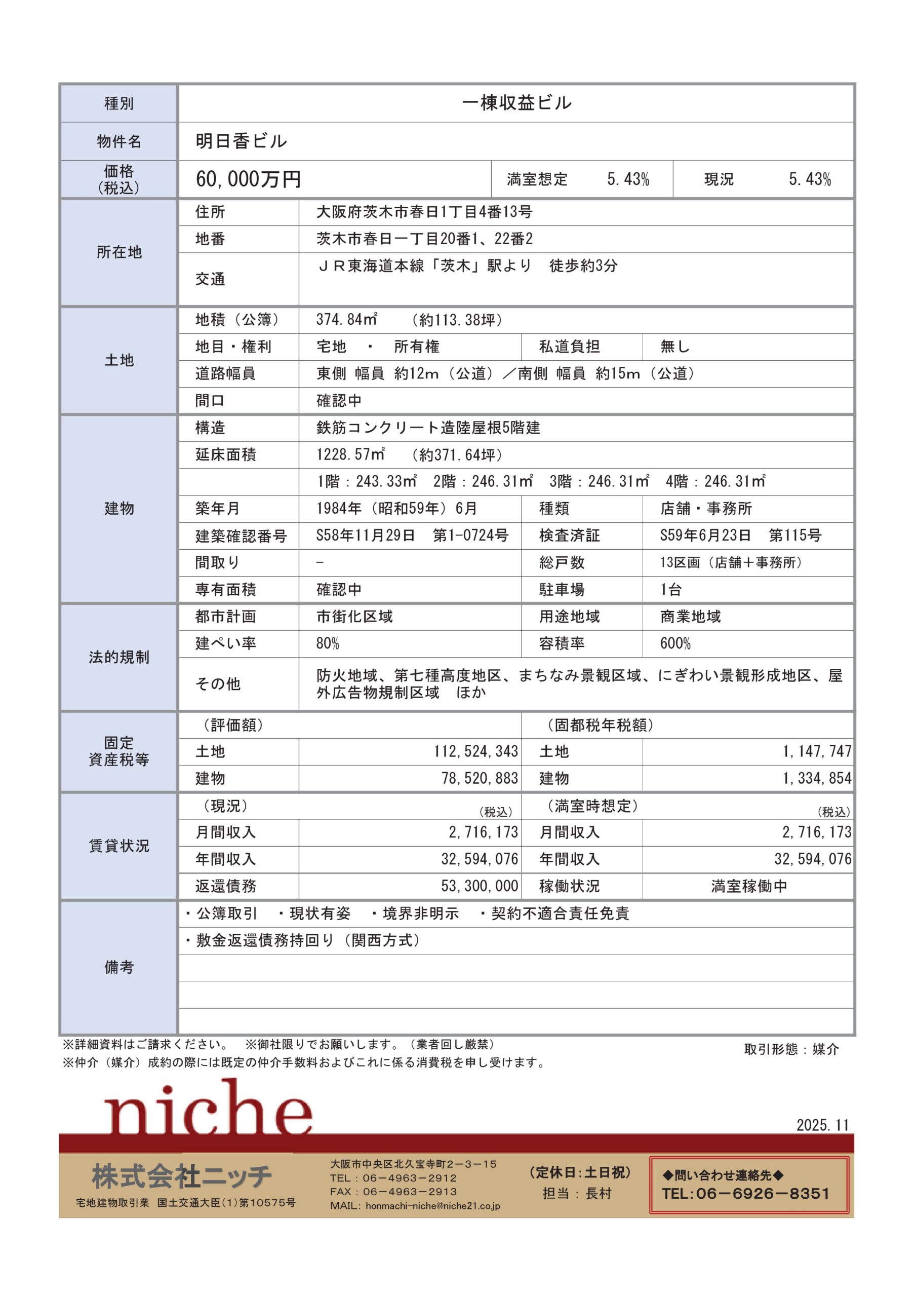 | その他 | ・公簿取引 ・現状有姿 ・境界非明示 ・契約不適合責任免責 ・敷金返還債務持回り(関西方式) 令和7年11月25日現在 (広告有効期限 令和7年12月31日) |